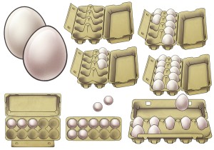 Die 6er-Eierkartons und 10er-Eierkartons enthalten zusammen knapp 80 Cliparts. Alle Eierkartons gibt es in vier Perspektiven: